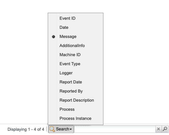 In the bottom right corner is a search bar. By clicking on Search, you can choose which column's information you want to search when you enter your search term.