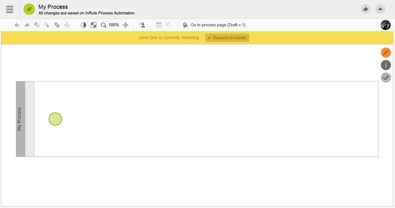 By sharing your process model you can invite other modelers to the process while you are modeling and they will be able to join and see the changes that you are doing in the process in real-time.