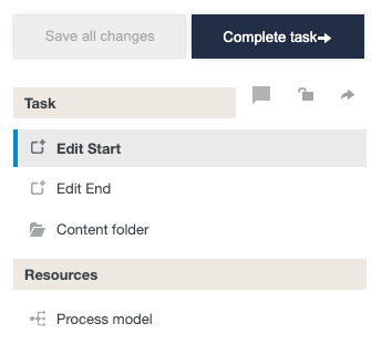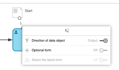 If you have a task with multiple forms associated with it, they will appear in the order in which they were dragged onto the task when modeling the process. In the example below, the form named End was dragged onto the canvas before Start, which is why it appears first. The forms do not appear in alphabetical order.