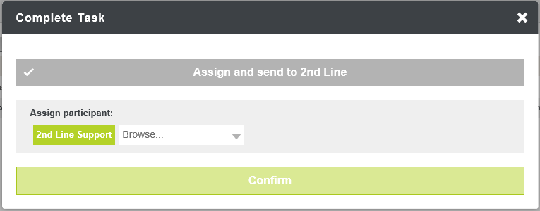 When the performer of the task before the sequence flow with the Assign role function set completes the task, they will get a question to assign the specific role to one or more performers before completing the task.
