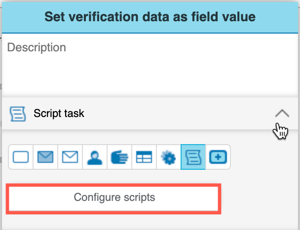 - From the asset browser, drag the script task Set verification data as field value to the modeling space.