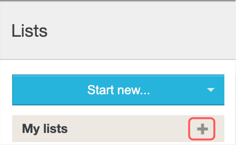 Start by creating a new list. Next to My Lists, click on the plus sign + to create a new list.