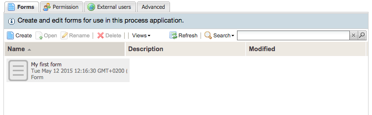 - Forms can be created in the Process Automation form editor. This allows you to create forms that contain information that is needed in order to be able to perform the tasks in the process application.