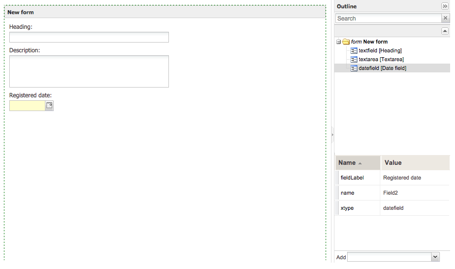 Also, add a Datefield, change the field label to Registered date but do not add any other attributes to it.