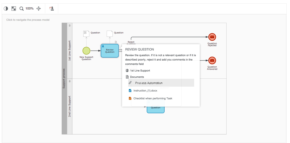 Anyone with the link can access the process model through the URL or through the pages where you have published the model.