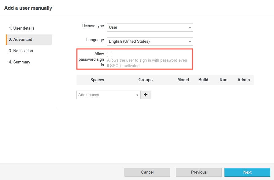 If you choose to generate the password, you must let Process Automation send an automatic notification to the added user with the generated password.