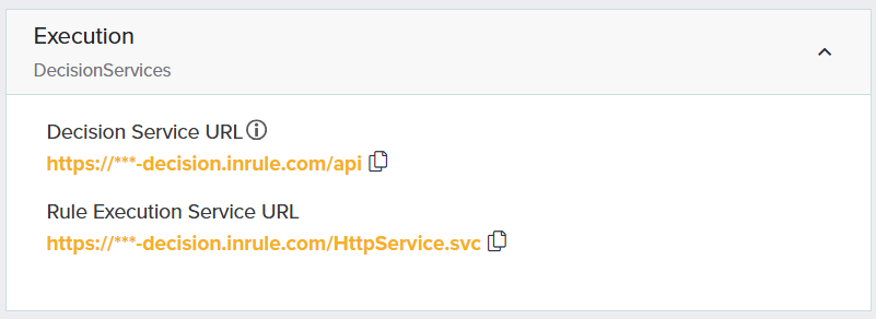 Use these URLs to connect to the Decision API or the Rule Execution API. You can read more about the different APIs for Decision Services in the article Introduction to Decision Services.