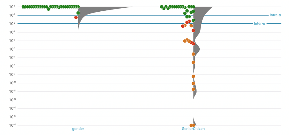 Newly added to Bias Testing, this test runs an Analysis of Variance statistical test. This test determines if the distribution of query prediction confidence scores within a cluster are different for records with other values of the variable being tested.