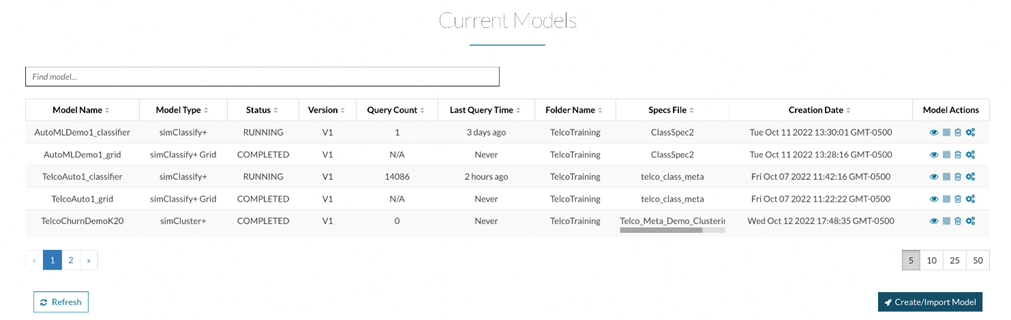 Several new fields have been added to the Models Table to make it easier to differentiate models from each other without needing to move into multiple Model Details pages.