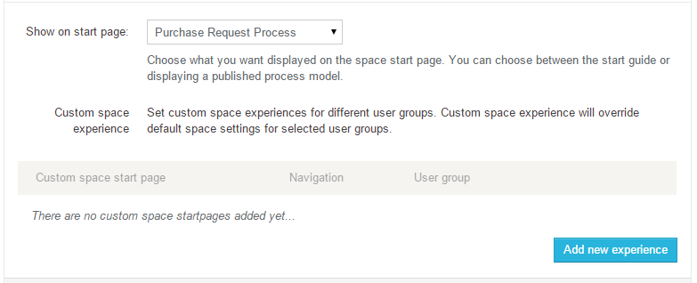 Multiple space experiences can be configured so that different people can have different experiences. This is done by adding a new Space Experience and selecting another group the custom space experience setting is for.