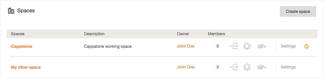You can set which space should be your default space by clicking on the small house icon that is shown when you hover over a space in your list. If you set a default space you will automatically be redirected to that space every time you log in to Process Automation. This will help you save clicks if you want to work in one single space over a period of time or if you only have one space.