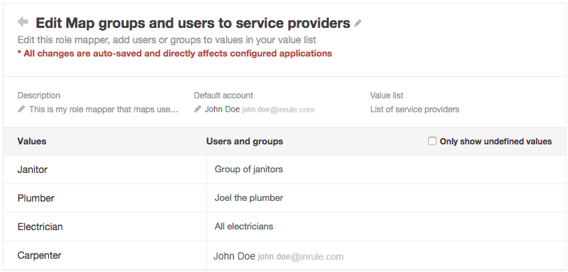 The role mapper is a feature in Process Automation designed to use form data to assign task permissions to a specific user. By using a Value list you can assign which value shall correspond with which user/group.