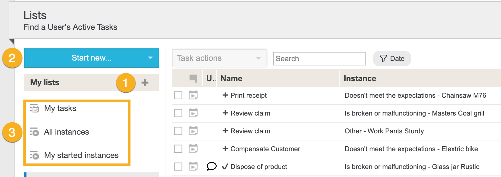 3. Show standard lists This is selected as default, when this box is checked the standard lists My tasks, All instances, and My started instances are created for all users.