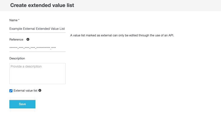 If the External value list is checked and the value list is saved, you will no longer be able to view or edit the value list from Process Automation. The Value list will only be reachable via API.